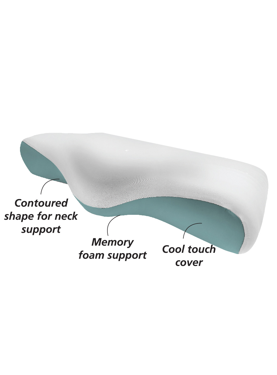 Every feature of this remarkable pillow has been designed with your comfort in mind. Shaped to conform to the contours of your head and neck, the memory foam is also responsive to heat and weight to customise the support. The soft and silky zip-off washable cover is made from a special fabric to help you stay cool. As the pillow measures 11/9H x 60W x 40D cm, it will also t any standard pillowcase.