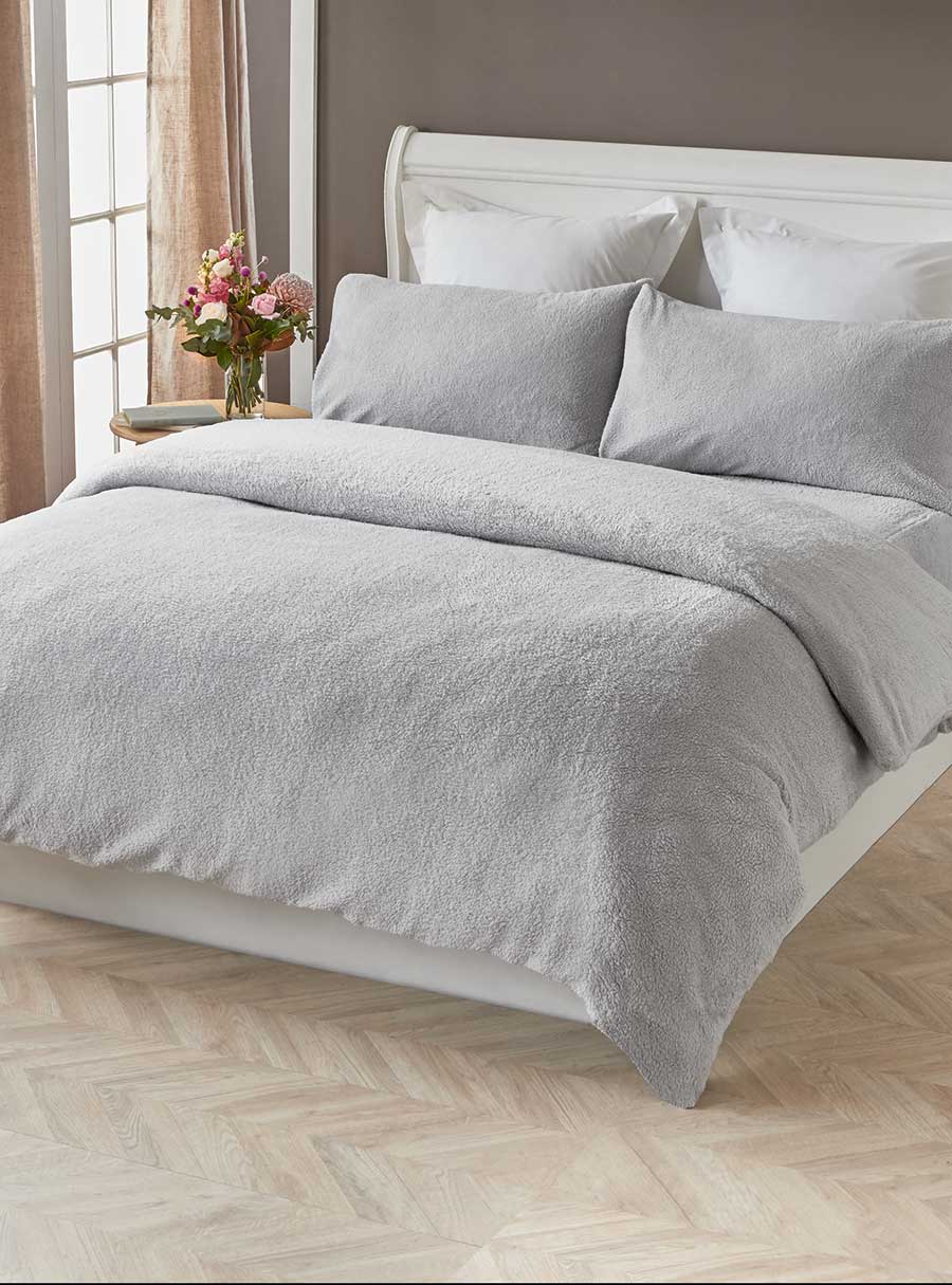 Treat yourself to this luxurious bedding range and you’ll look forward to slipping into bed on even the coldest nights. They are made from soft teddy fleece – the perfect name for a fabric so cosy, soft and warm. Match the fitted sheet with the double sided, button closure teddy duvet cover and you will sleep in cuddly comfort all night long. You can also purchase pillowcases separately for added luxury. Easy to wash and dry, the pale grey colour will look lovely in any bedroom.