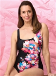 A sleek black base with vibrant painted florals for a slimming, stylish look. Comfortable straps and a classic neckline make it perfect for beach or pool. 80% Polyamide, 20% Elastane.