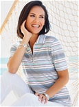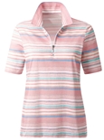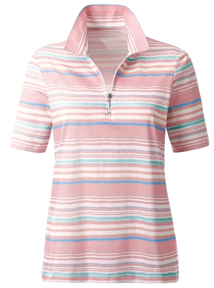 Coordinating striped design in delicate pastel shades: polo shirt with a short zipper at the front. 50% Cotton, 50% Modal.