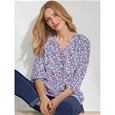 Nina Leonard Round Neck Balloon Sleeve Print Tunic