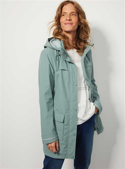 Your wardrobe will not be complete without this water-repellent and lightweight parka. With a zip front and press stud closures. A high collar for neck protection and a removable hood that can be tightened with drawstring and toggles. Two pockets with a flap and press-stud closure. Outer: 100% Nylon. Lining: 100% Polyester.