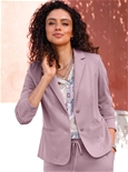 This jersey blazer features a classic shape with a lapel collar, button front, 2 welt pockets, rounded edges at the front and decorative buttons at the end of the long sleeves. Shoulder pads and Viennese seams for a perfect fit. The soft and easy-care fabric makes it comfortable and suitable for everyday wear. 58% Viscose, 36% Polyamide, 6% Elastane.