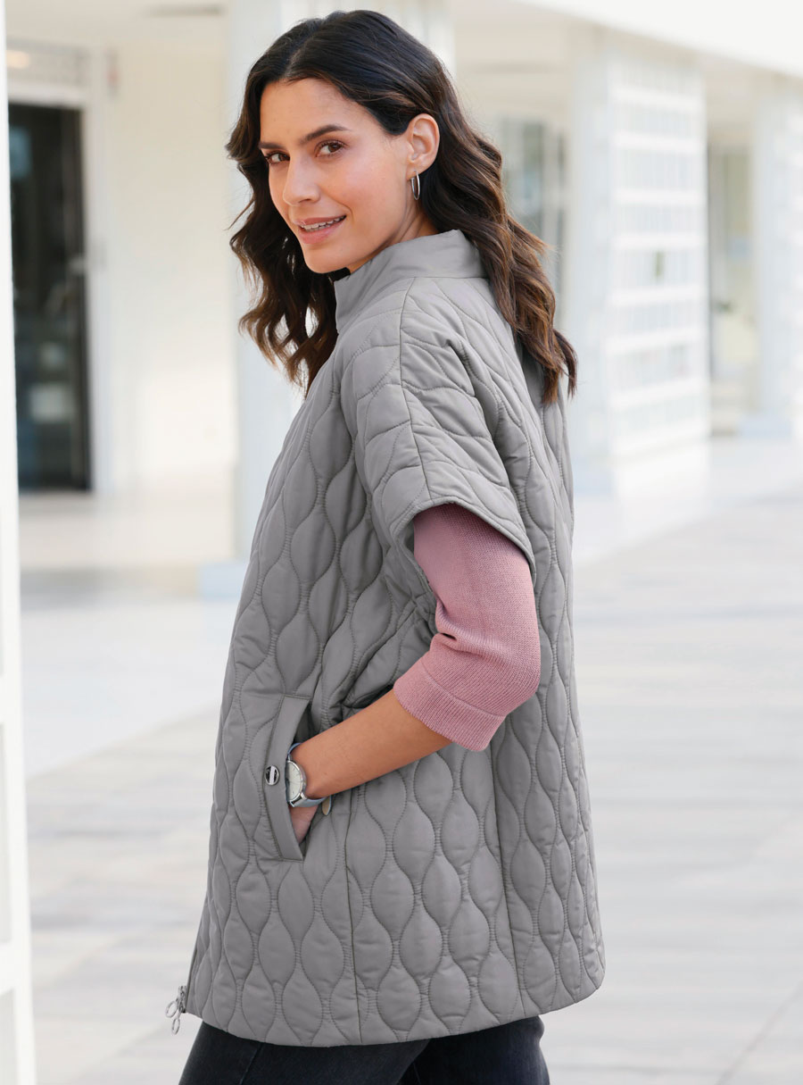 Wow, this quilted vest has what it takes to become a favourite. In a modern oversized shape with a stand-up collar, dropped shoulders and a full-length fine 2-way zipper. Side welt pockets with press studs.
