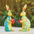 Cute and colourful rabbits with sweet, smiling faces will look gorgeous on the patio, in the garden or as a quirky decoration indoors. The green one, strewn with stylised flowers, holds an apple. Made from painted metal and stand 38 cm tall from the tips of their long ears to the base of their distinctive little tails. Sold separately.