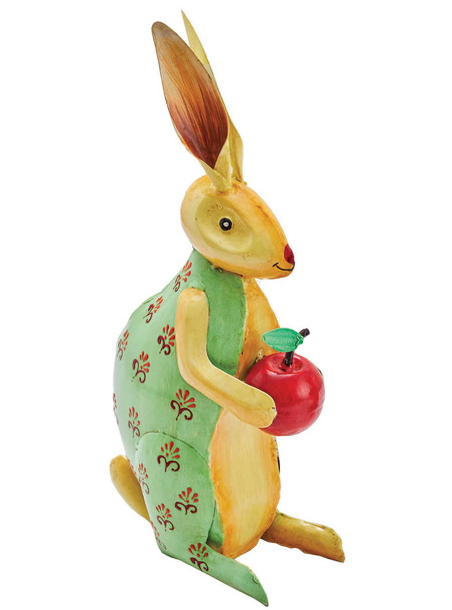 Painted Iron rabbit holding a red apple