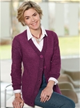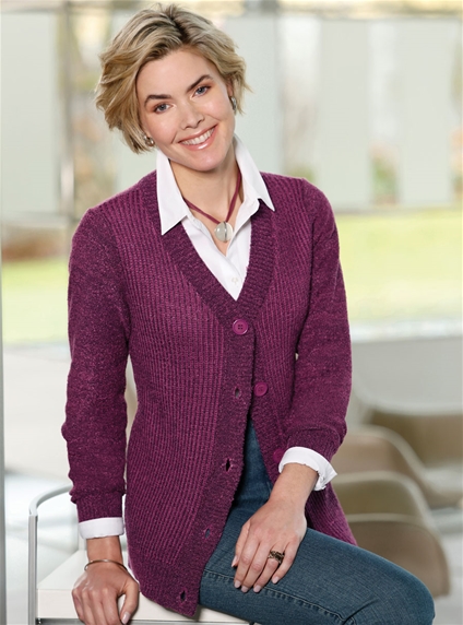 In casual bouclé fabric: cardigan with elongating ribbed look on the front. V-neck with wide ribbed trim. Full-length button placket with tone-on-tone buttons. Ribbed elastic cuffs on the long sleeves.