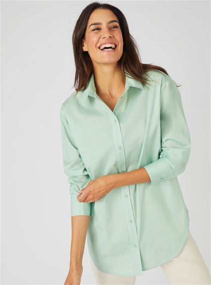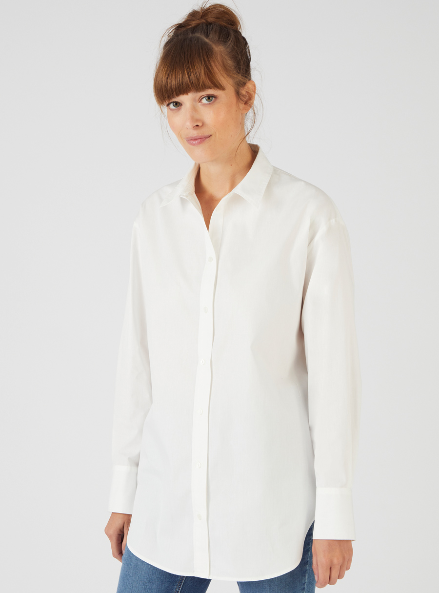 Pure cotton longline shirt with scoop front and back hem. Comes in a range of soft feminine colours. 100% Cotton.