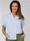 Relaxed and effortlessly chic, this 100% viscose shirt features extended sleeves and a timeless blue stripe design — perfect for laid-back days or smart casual style. 100% Viscose.