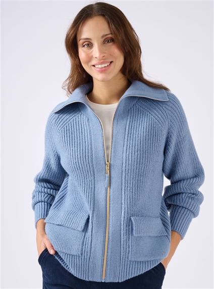 This zipped sweater offers warmth and comfort with its Thermolactyl® knit. Featuring ribbed textures, a stand-up collar and two flap patch pockets, it’s ideal for lounging or casual wear. 88% Acrylic, 12% Polyester.