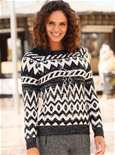This is sure to take pride of place in your winter wardrobe! Cuddly soft sweater in a striking Norwegian pattern. With a round neckline and ribbed trims on the long sleeves and hem.