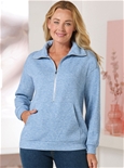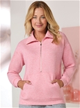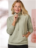 Soft fluffy knit zip sweatshirt with high neck and handy kangaroo pocket.