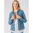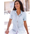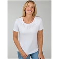 A classic tee with a modern twist. A round neckline with a short button placket. This top is adorned with lovely lace on the short sleeves for a chic look. 100% Cotton.